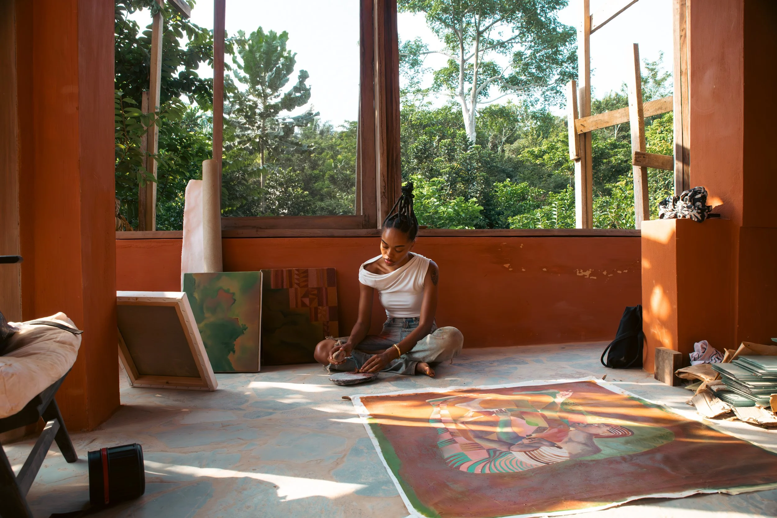 Exploring narratives rooted in metamorphosis by way of tradition building and breaking, she often captures the essence of visual and material cultures of agrarian communities throughout the African diaspora. Her West-African familial lineage and lived experience between rural Mississippi and suburban Chicago, as well as her frequent travels through West Africa serve as impetus in creating scenes of stillness and ordinary pleasures of daily life.